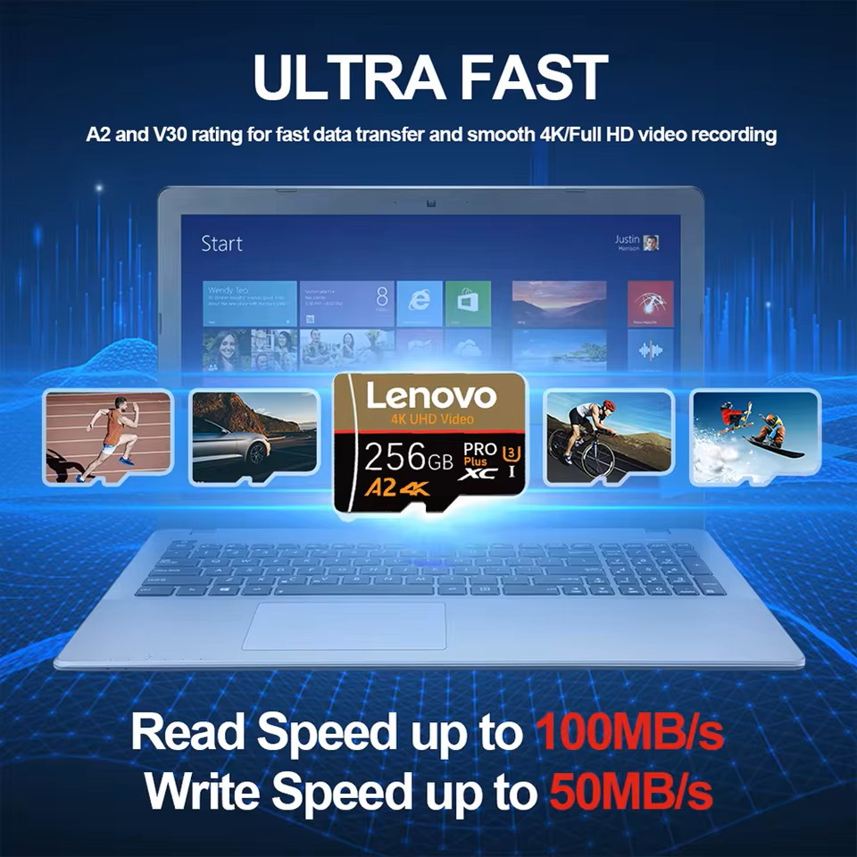 Lenovo 128GB Gold PRO Plus 4K UHD Video Micro TF SD Card + Adapter U3 XC I A2 4K