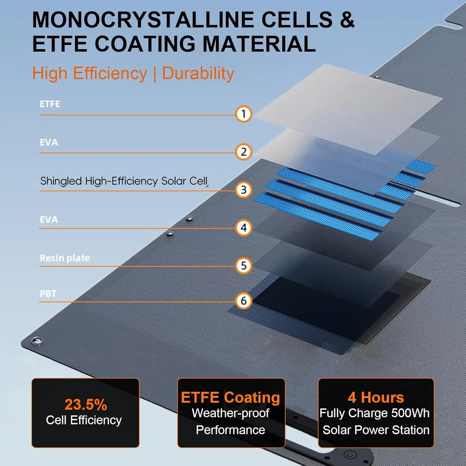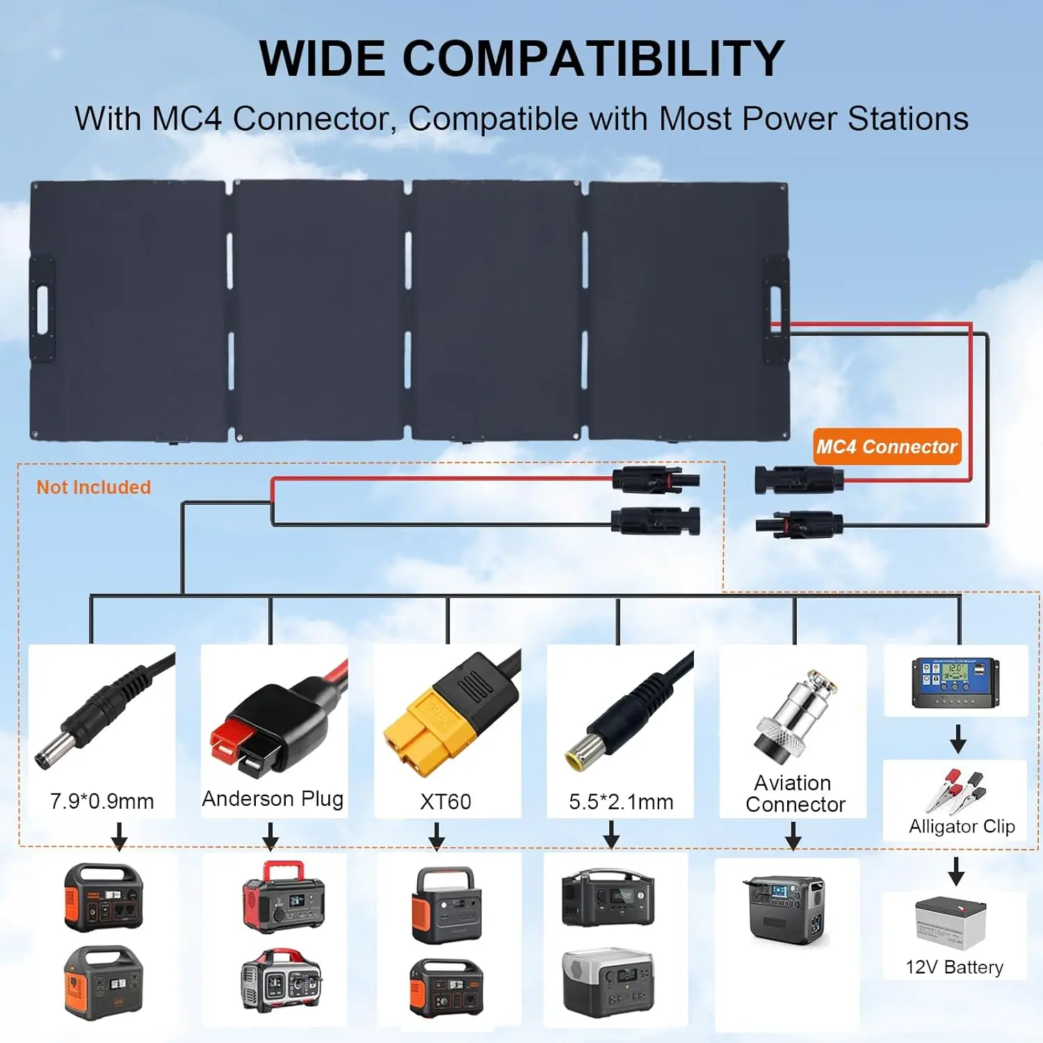 WIDE COMPATIBILITY FOR MOST SOLAR GENERATORS: Upgraded solar panels with MC4 cable output, connected to the solar cable (not included), are compatible with almost all solar generators, such as Jackery, BLUTTI, Anker, EF ECOFLOW, etc.